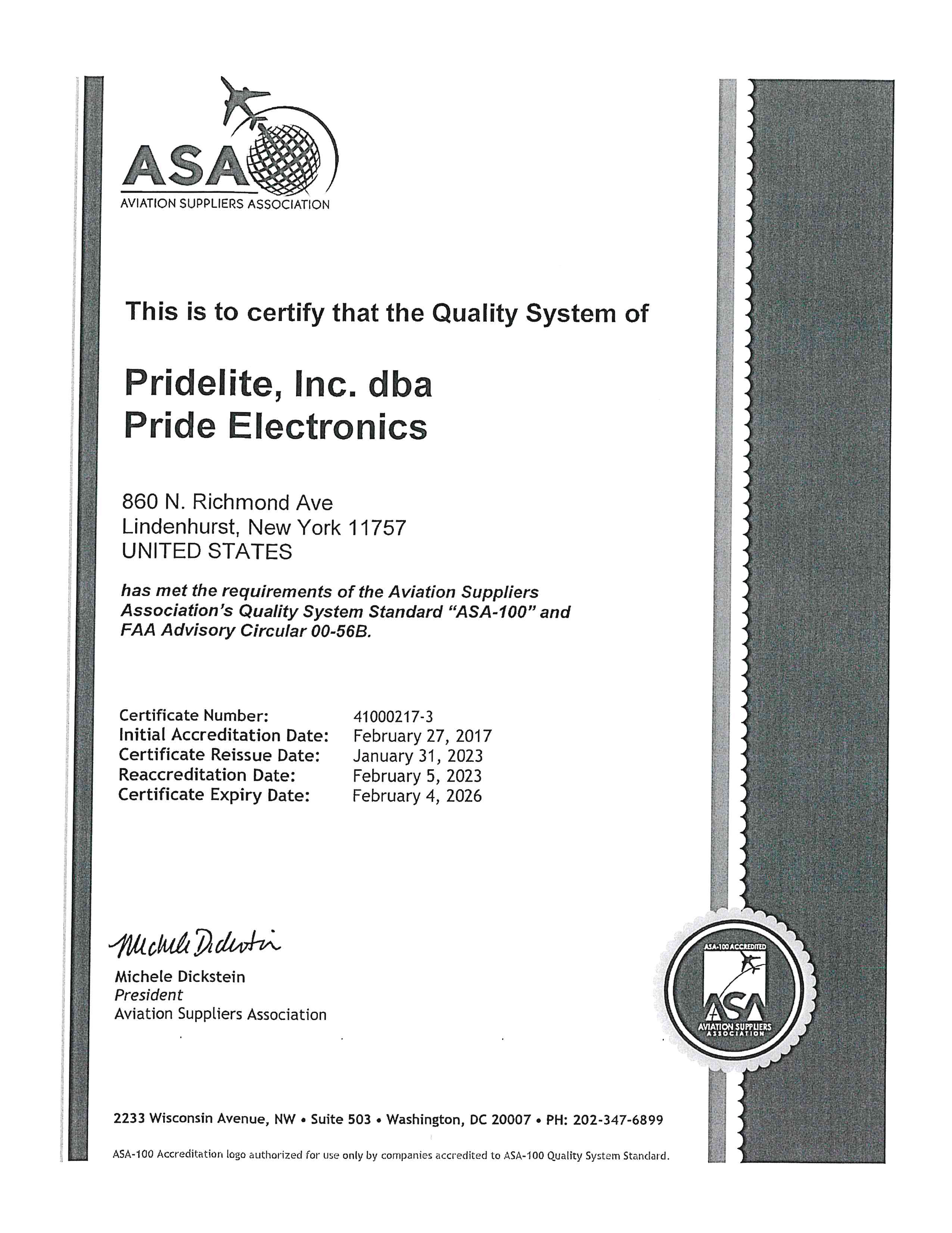 We Pride ourselves on our vendor relationships that we have forged over the years to mitigate and eliminate any chance of sub-standard and counterfeit products from getting into the supply chain. We currently have hundreds of thousands of components in stock with access to millions more at our fingertips. Pride Electronics is ISO9001/2015 and ASA100 certified.